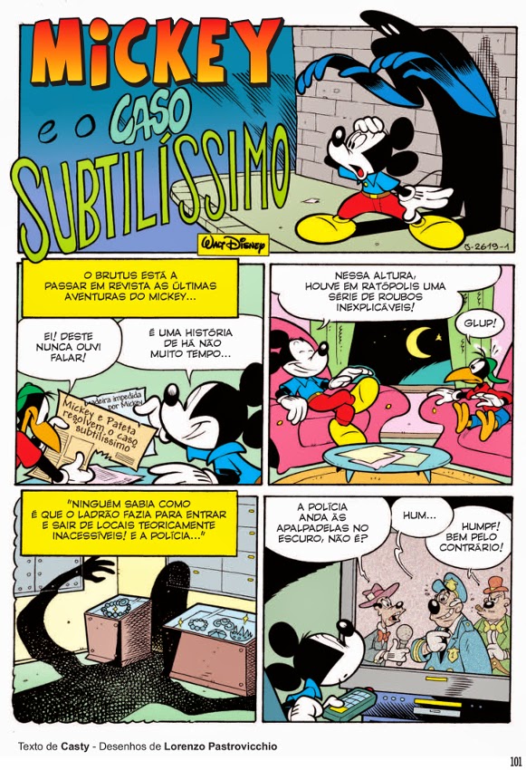 E o grande sonho do Mickey seria, certamente, acabar com a carreira criminosa do Mancha Negra! Mas parece que o mega-vilão tem truques cada vez mais difíceis de bater. Desta vez, decidiu levar o conceito de “mancha” demasiado a sério e parece ter passado para o plano bidimensional. Será que vai escapar entre os dedos do Mickey? O Pateta dá uma ajudinha em Mickey e o caso subtilíssimo. Com a assinatura de Casty.