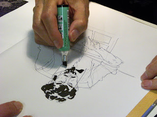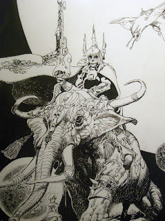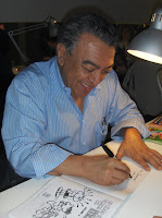 Da minha colecção, seleccionei hoje este “Conan” oriundo do mundo fantástico do espanhol Esteban Maroto. Autor pouco conhecido entre nós, encontramos algumas das suas histórias em publicações antigas, nomeadamente na revista ”Vampirela” ou na colecção “Mosquito” (5ª série). Confesso que fiquei “rendido” ao excelente traço deste autor, não só pelos desenhos que fez durante o FIBDA deste ano, que a imagem acima bem exemplifica, mas também pelos seus magníficos trabalhos que compunham a exposição central deste ano do festival. O esboço do desenho foi feito a lápis e o contorno a marcador fino preto.