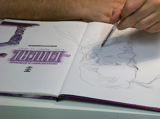 Porque hoje é Domingo, fica instituído como o dia da rubrica "Desenhos Autografados". Os dois sketchs agora publicados são da autoria do autor espanhol Júlio Ribera - convidado do 19º FIBDA - e representam duas personagens da série "O Vagabundo dos Limbos" que se encontra parcialmente publicada em Portugal pela Meribérica. Os desenhos foram feitos a lápis, contornados a caneta e coloridos com marcadores.
