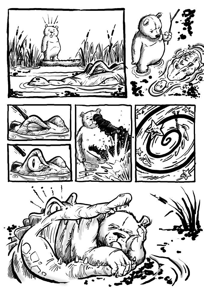 Intitulada Failed Bear Suicides é uma deliciosa webcomic de autores portugueses que corre actualmente no facebook. As mil e uma tentativas de suicídio de um urso (para já ainda só vai na décima) de um pacato urso de peluche revela-se uma bem-humorada narrativa onde o final previsível conduz sempre ao desfecho pouco feliz para... um coelho branco anteriormente conhecido justamente pela sua tendência suicida. Os argumentos inspirados têm a assinatura de Ivo Sousa Dias (o último publicado é da autoria de heleno menino)e o desenho verdadeiramente fantástico que enche as páginas é do sempre fantástico Osvaldo Medina. O resultado é muito bom e obviamente recomenda-se...